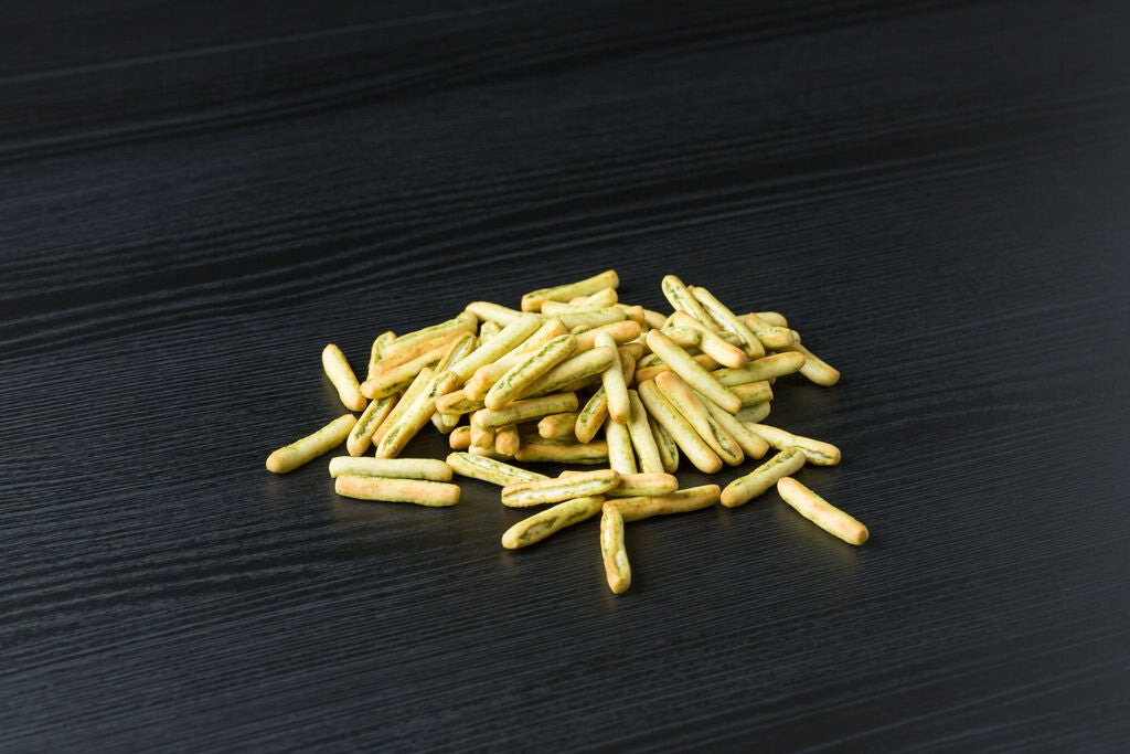 Krokante Italiaanse tarwesticks met basilicum en knoflook. Licht, knapperig en vol van smaak. Perfect als borrelhapje, bij kaas en charcuterie of om te dippen.