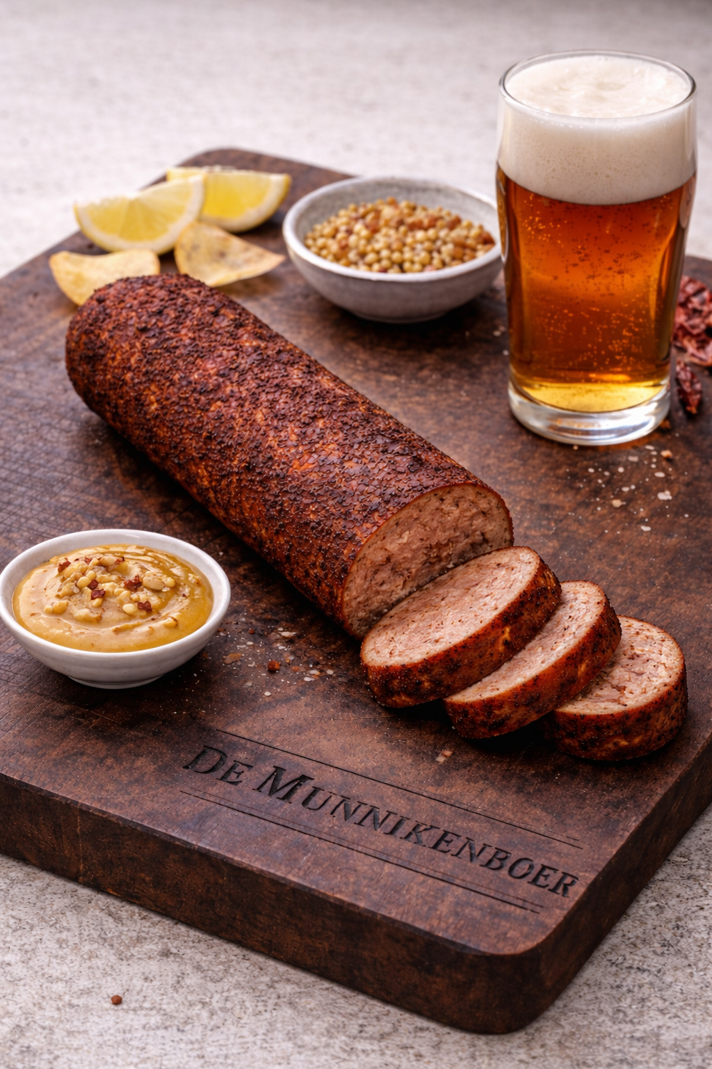 De satégrillworst van De Munnikenboer: een smaakvolle, ambachtelijke borrelklassieker voor ieder moment.